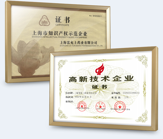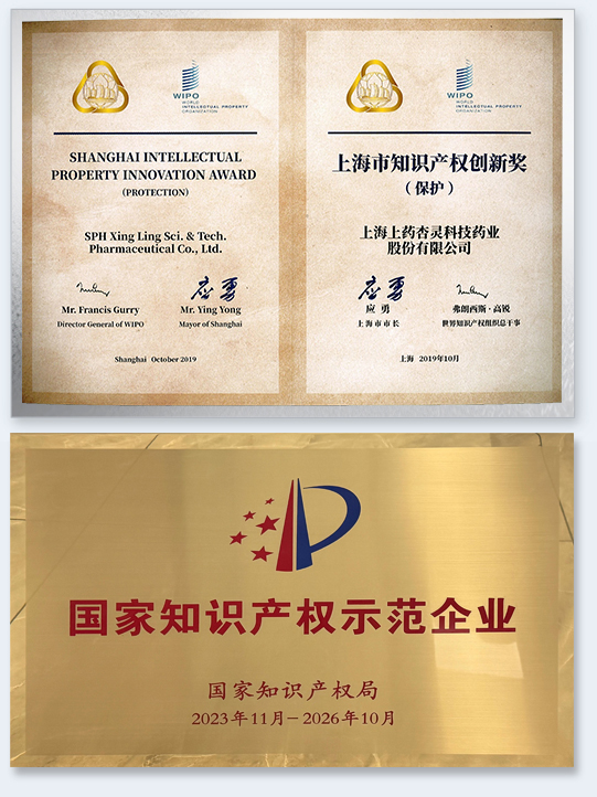 2016年,上海杏彩公司科技药业股份有限公司荣列上海市专利工作示范企业,并于2018年底以优秀成绩通过上海市知识产权局验收。2019年,申报第一届上海市知识产权创新奖(保护)并获一等奖。2019年被认定为国家知识产权优势企业。2023年荣获国家知识产权示范企业、上海市创新型中小企业、上海市专精特新中小企业、上海市产教融合型培育企业。
